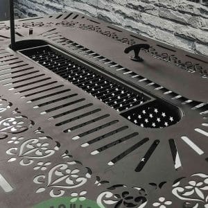 ویژگی توضیحات نام محصول آتشدان 6 ضلعی کد محصول B206 ابعاد قطر 130 سانتیمتر و قطر 90 سانتیمتر هولدر کتری