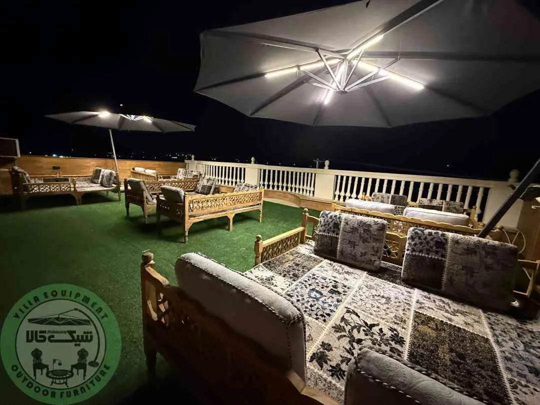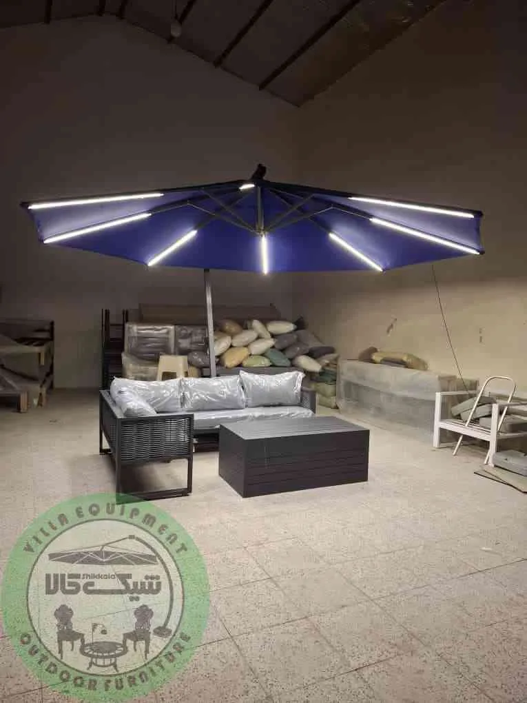- امکان اضافه کردن چراغ: امکان نصب چراغ بر روی چتر وجود دارد که می تواند برای فضاهای شبانه بسیار جذاب باشد و زیبایی خاصی را به محیط ببخشد.