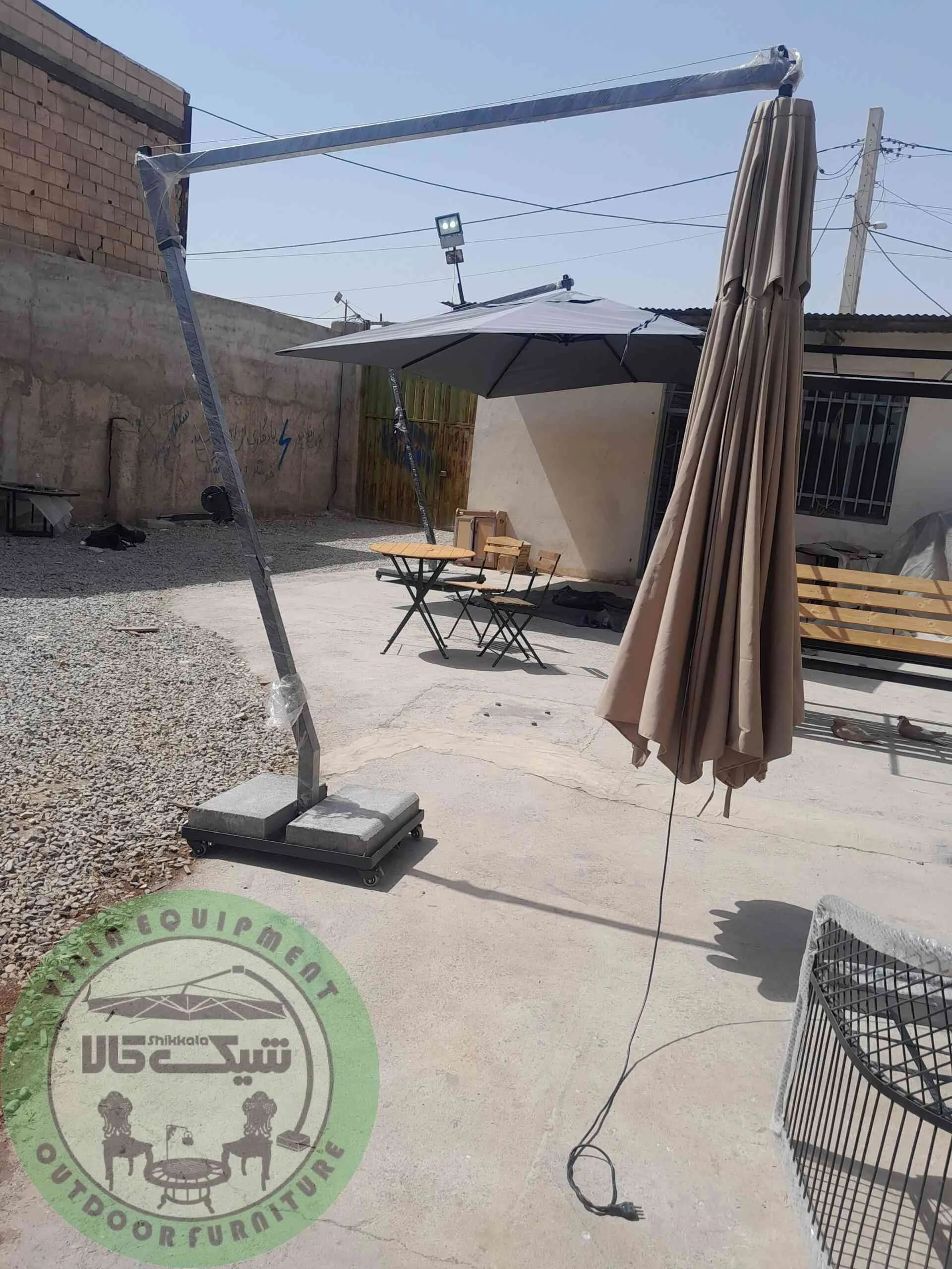 - ساختار مستحکم: چتر از یک پایه مقاوم، دو ستون محکم، دو وزنه بتنی برای ثبات و خود سایبان تشکیل شده که به شما اجازه می دهد در برابر وزش بادهای ملایم از آن استفاده کنید.
