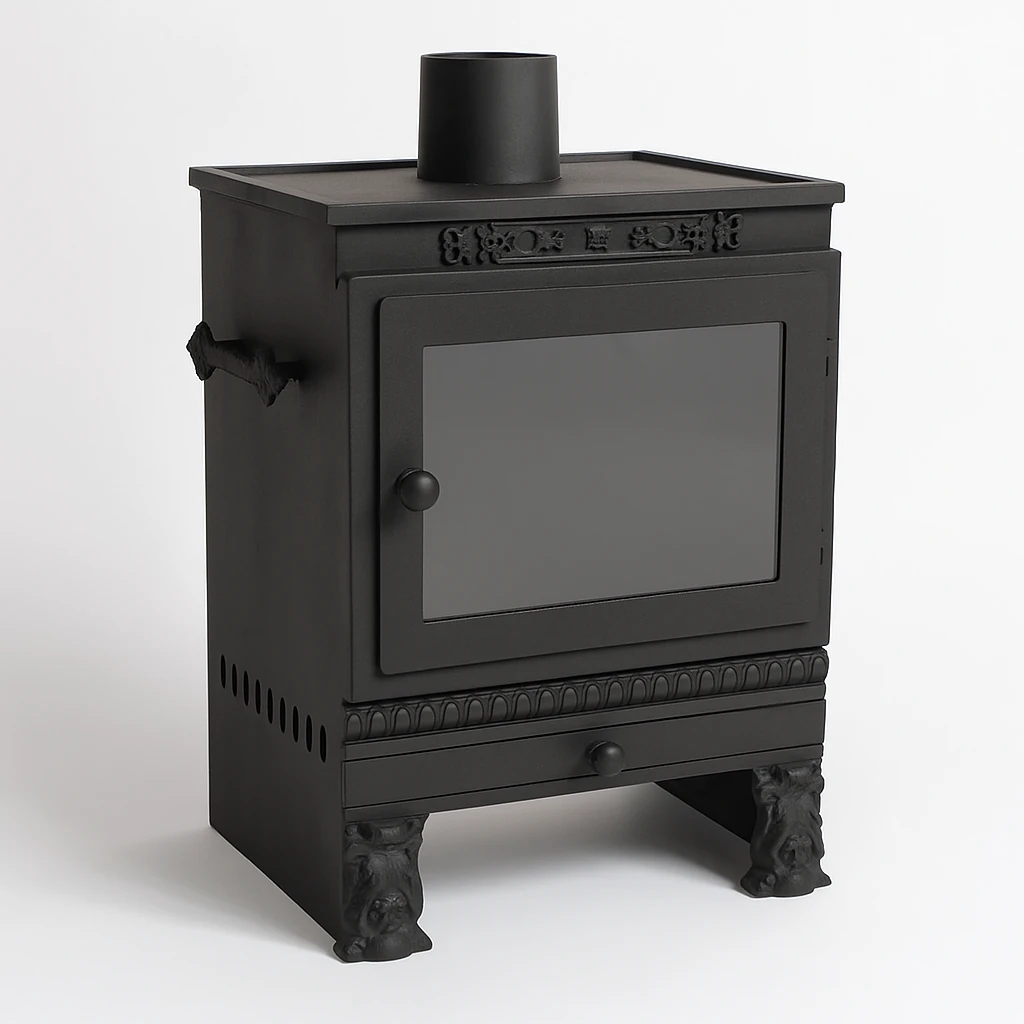 - کف بخاری: کاملاً چدنی برای ذخیرهسازی و تابش طولانیمدت حرارت حتی پس از خاموش شدن شعله.
